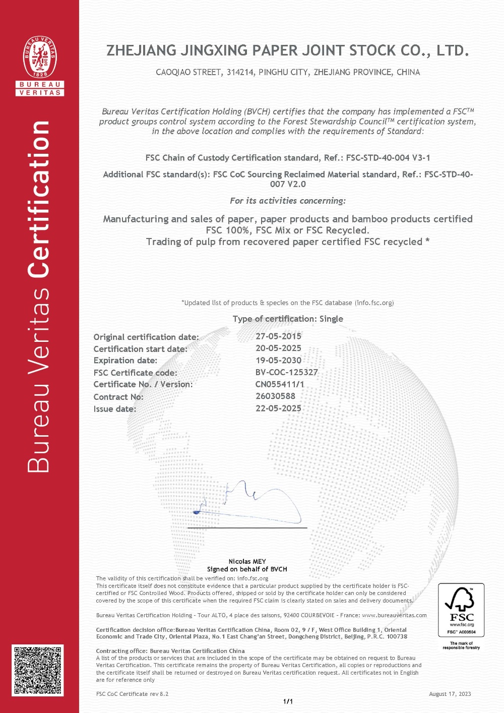 OETY欧亿纸业于1996年率先在同行业通过ISO9001质量管理体系认证,2002年通过ISO14001环境管理体系认证,2014年通过OHSAS18001职业健康安全管理体系认证,2015年通过GB/T23331能源管理体系和FSC®森林体系认证,2018年通过两化融合管理体系认证。